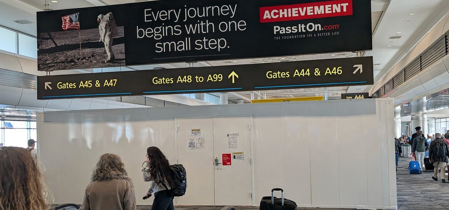 Really? No way to get to Gate 48?? The sidewalk is closed. Kaput. Our of order. That is an ex-sidewalk.