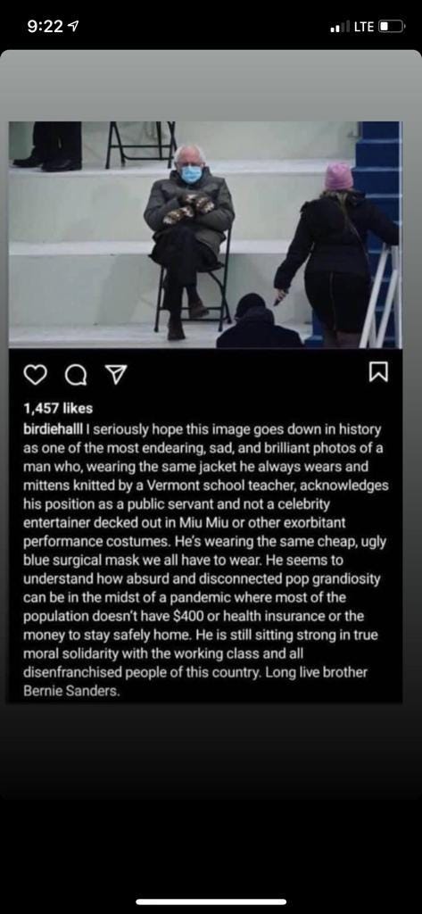 It all began with this image of Bernie Sanders at the inauguration.