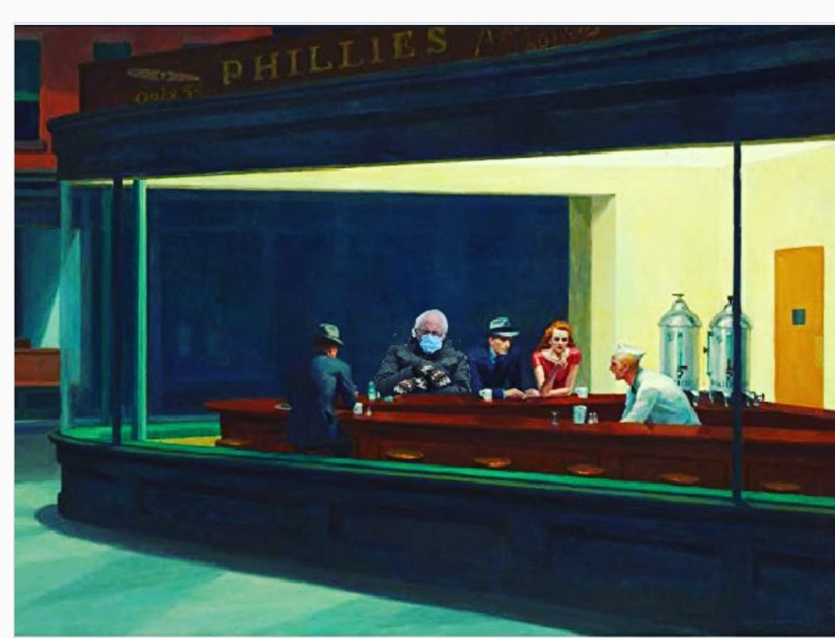 For those people who aren’t plugged into the memosphere, here’s a collection of my favorite Bernie memes. For those who aren’t plugged into the blogosphere, I’m trying out Substack as my new blogging platform. I wrote 571 posts on my Blogger blog, 70 Years Old. WTF! Substack claims to have imported them, as far as I can tell, it has and I like writing here better than on Blogger. Sorry Google.